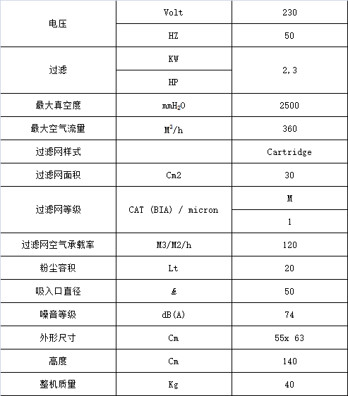 • 吸塵系統配備2個碳刷型旁路電機,裝在隔音保護罩中,有單獨的控制開關;