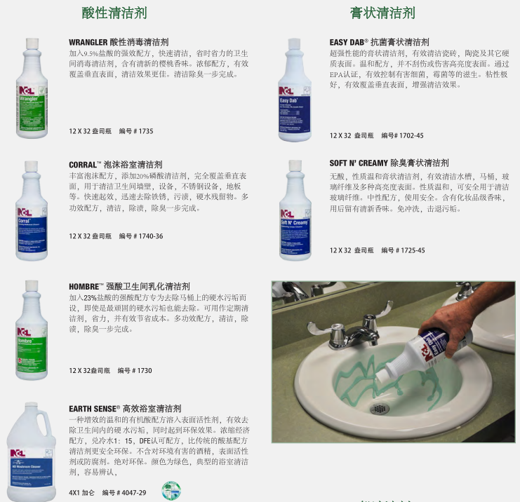 干凈、衛生的衛生間反映了設施的整體清潔程度。NCL的衛生間清潔系統提供了最先進的清潔、消毒和除臭產品,以確保最大功效的控制衛生間環境中致病細菌。對于地板,墻壁,和其他表面,你也會找到一個更完整的程序。健康 經濟 的清洗方案可以選擇適合清潔人員使用的化學輸送系統。低成本的傳統包裝提供最大的靈活性。稀釋控制管理系統提供稀釋狀態下各種各樣的產品,以達到最佳效果。