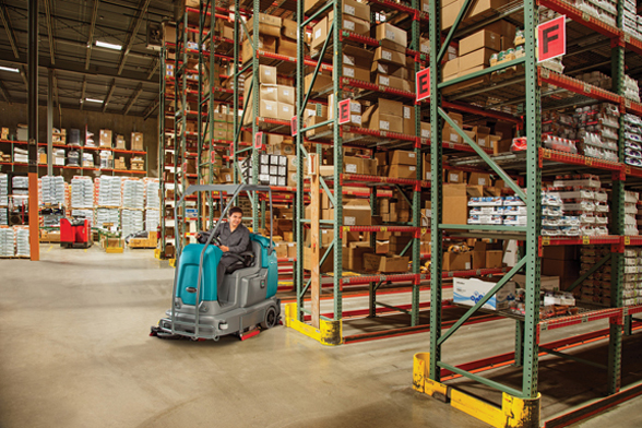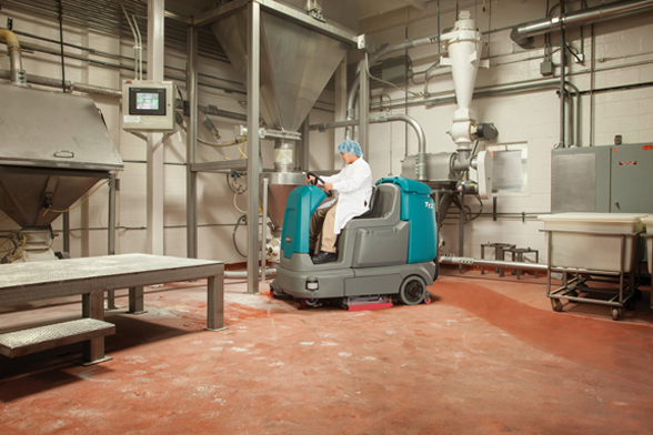 坦能 T12 緊湊型駕駛式電瓶洗地機。高負載駕駛式洗地機的強大功能和緊湊型設計的易操作性。使用坦能的創新產品特性和不含化學清潔劑的 ec-H20™ 電解活性水洗地技術,提高清潔工作效率。